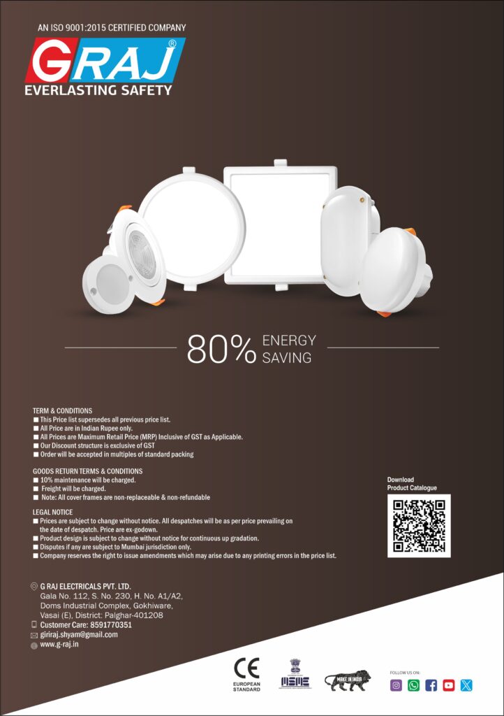 At G-raj, we are committed to creating electrical solutions that deliver both protection and performance. Our product range includes strong PVC surface boxes, reliable switches, energy-saving LED lights, and durable accessories designed for every environment. Each item is carefully crafted with a focus on safety, efficiency, and modern aesthetics. With an emphasis on energy conservation, robust engineering, and smart design, G-raj products offer long-lasting reliability for residential, commercial, and industrial spaces. Trust G-raj to power your spaces with products that are safe, stylish, and built to perform.